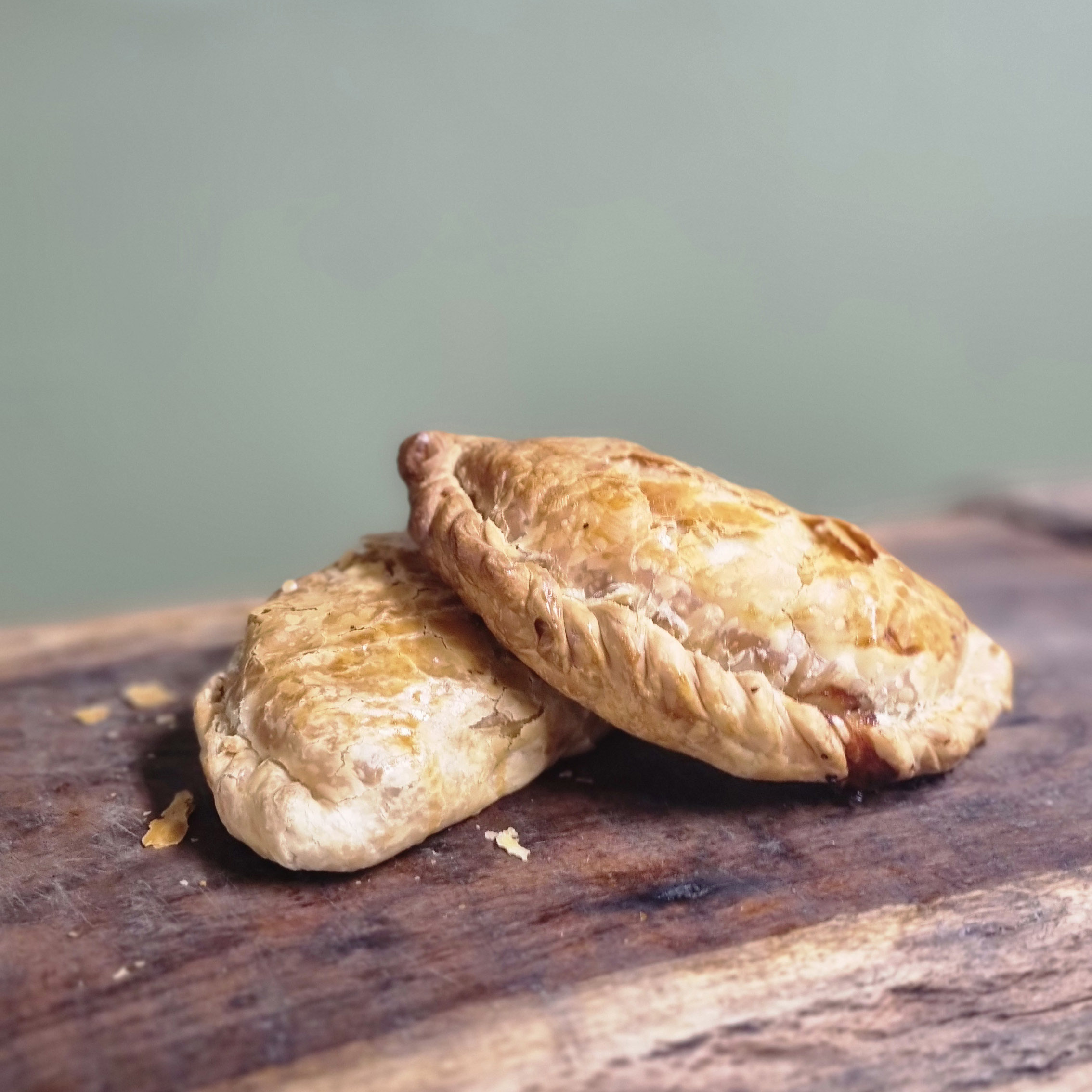 Corn-ish Traditional hand-crimped pasty filled with beef, potato, onion, and swede in a rich, peppery gravy. A hearty West Country classic.